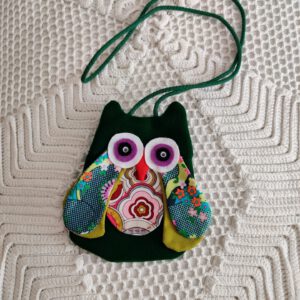 Bolsa em tecido acolchoado e croché
