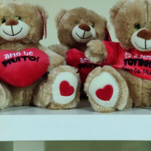 Peluche castanho coração vermelho